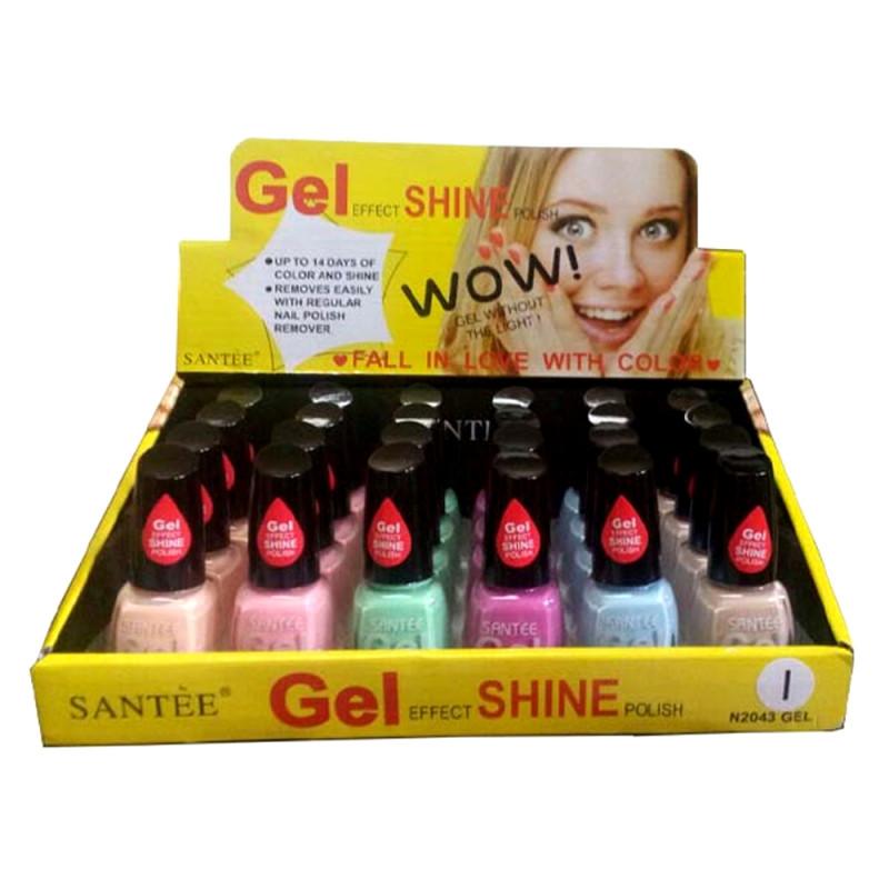 24 Piezas de Esmalte En Gel Santee. Compra de mayoreo y surte tu tienda o negocio, tenemos peluches, perfumes, ventiladores, lenceria, ropa, maquillaje, accesorios, desechables, mochilas, blancos, papeleria, juguetes y productos de temporada de mayoreo en demayoreo.com