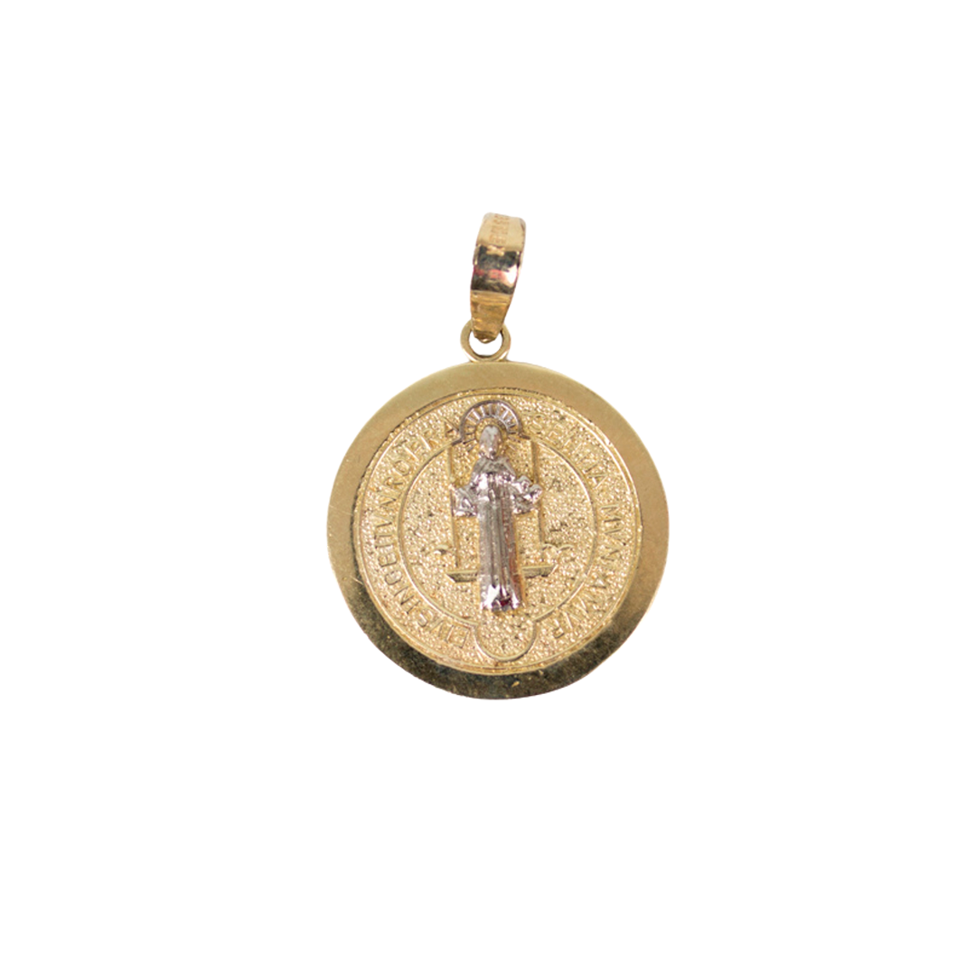Medalla biselada de San Benito grabada en 10k. Compra de mayoreo y surte tu tienda o negocio, tenemos peluches, perfumes, ventiladores, lenceria, ropa, maquillaje, accesorios, desechables, mochilas, blancos, papeleria, juguetes y productos de temporada de mayoreo en demayoreo.com